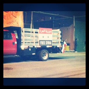 The next free event of the day was visiting a TV show filming. On my way to the grocery store, I noticed that the Good Wife would be filming the block down from my apartment. The filming would last from 7pm to midnight, a “middle eastern college protest scene” complete with fake cops. And real cops, just in case. It was pretty anti-climatic: some people standing in the street holding a banner, a few poorly/cheesily dressed riot cops, a light, a fake truck. I’m sure once the actually filming started, things must have gotten more interesting. Maybe they were going to digitally insert more protesters. Also, I guess my neighborhood looks like a Syrian neighborhood, so that is pretty awesome.