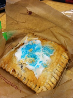 In honor of Pi day (which was yesterday…think about it 3/14…) the Sweetery Truck in front of my building was offering free pies! Yes, that is right, free pies. I got blue berry. I don’t know that I would call it a pie exactly, it really seemed more like a gourmet pop-tart (or is a pop-tart a bastardization of a pie?). But it was great, if my sweet tooth ever strikes at work, I know exactly where to head. Walking the streets of New York and see the Sweetery Truck, it is worth a stop.