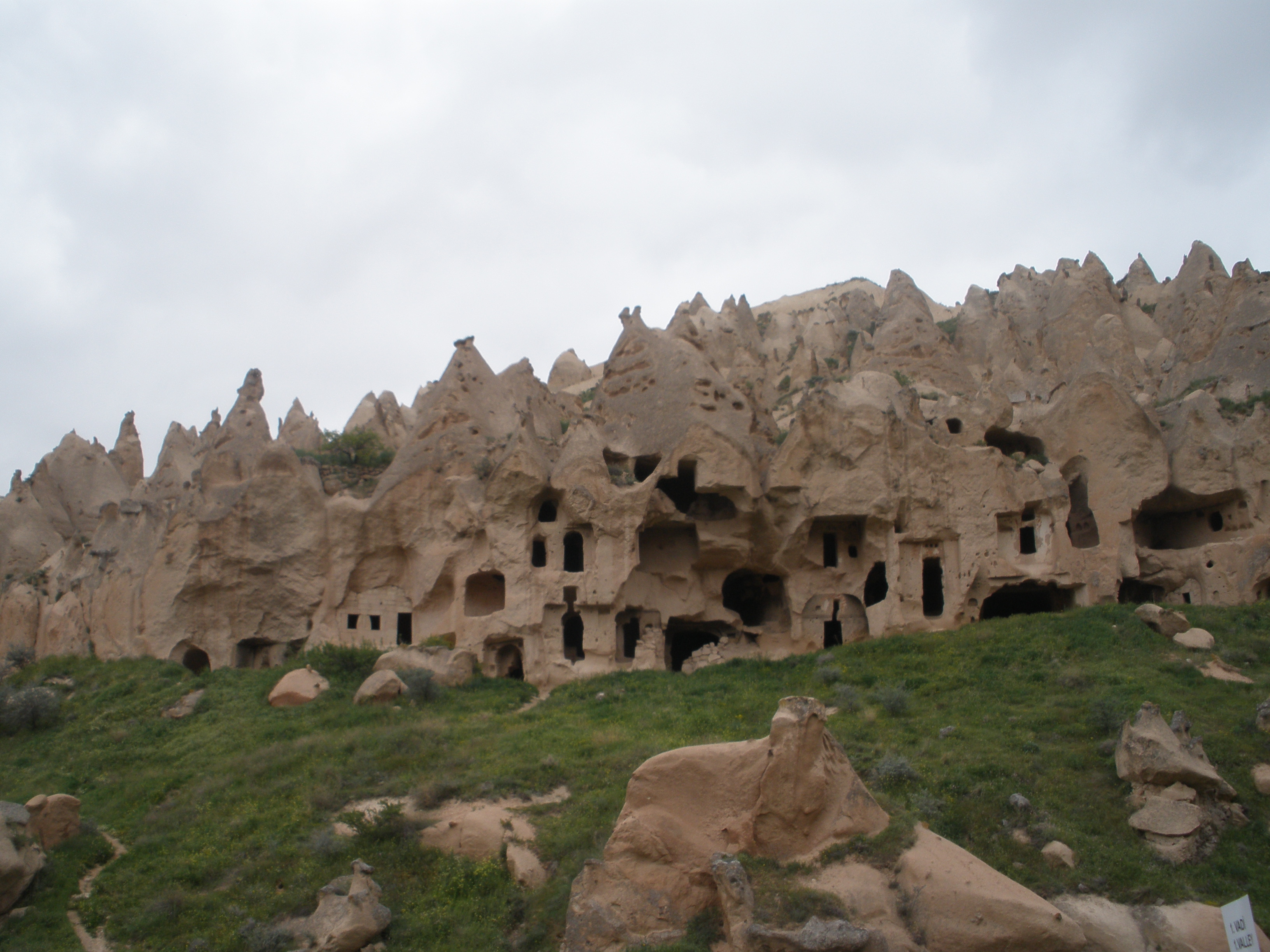 Today, most of these are open to the public to explore freely. One of the things that was most interesting to me is that instead of building something, you just would carve it out. So, a table is not built of wood, but carved out of the surroundings. You can also tell from this picture that the weather was not exactly the most beautiful in early May.