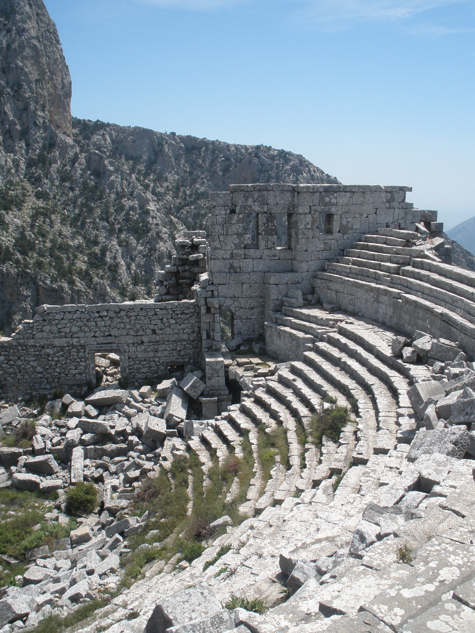 This past May, I traveled to Turkey for my final graduate school field seminars. One of the sites we visited was the ancient city of Thermosos atop a mountain. While the city itself turned out to be rather impractical (difficult to have water, supplies, etc), the backdrop for their theater is breathtaking. I just wanted to share a little piece I wrote about my experience there. Enjoy!