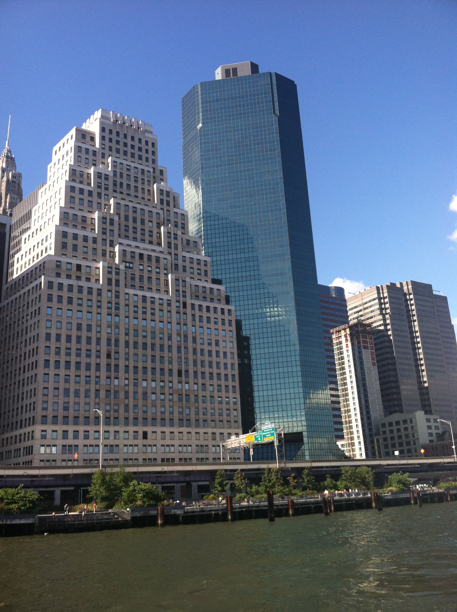 Here is Downtown Manhattan looming over the water. The East River was apparently looking pretty slimy that day.