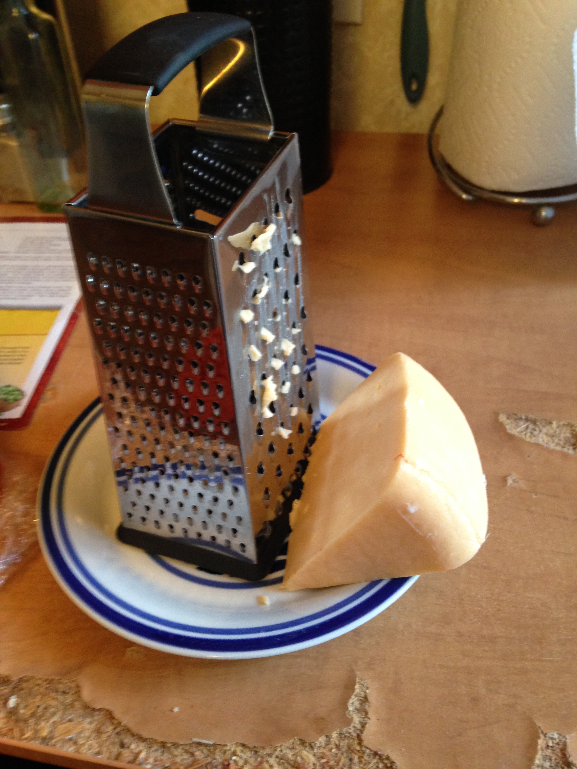 Sunday night, I decided to try a new mac and cheese recipe. This one comes from a friends Beer of the Month Newsletter, but they found it via livelovepasta. I’ve been wanting to try this one for awhile. I did make a few adjustments to the recipe just to save some money. I didn’t add the Romano cheese, Panko bread crumbs, or Parsley. I was able to find all of the ingredients I didn’t have at my local grocery store. For the beer, I choose Bell’s Amber Ale. Bell’s is a Michigan brewery, and it is always really exciting to see how it has grown in NYC. There is my Gouda ready to be shredded.