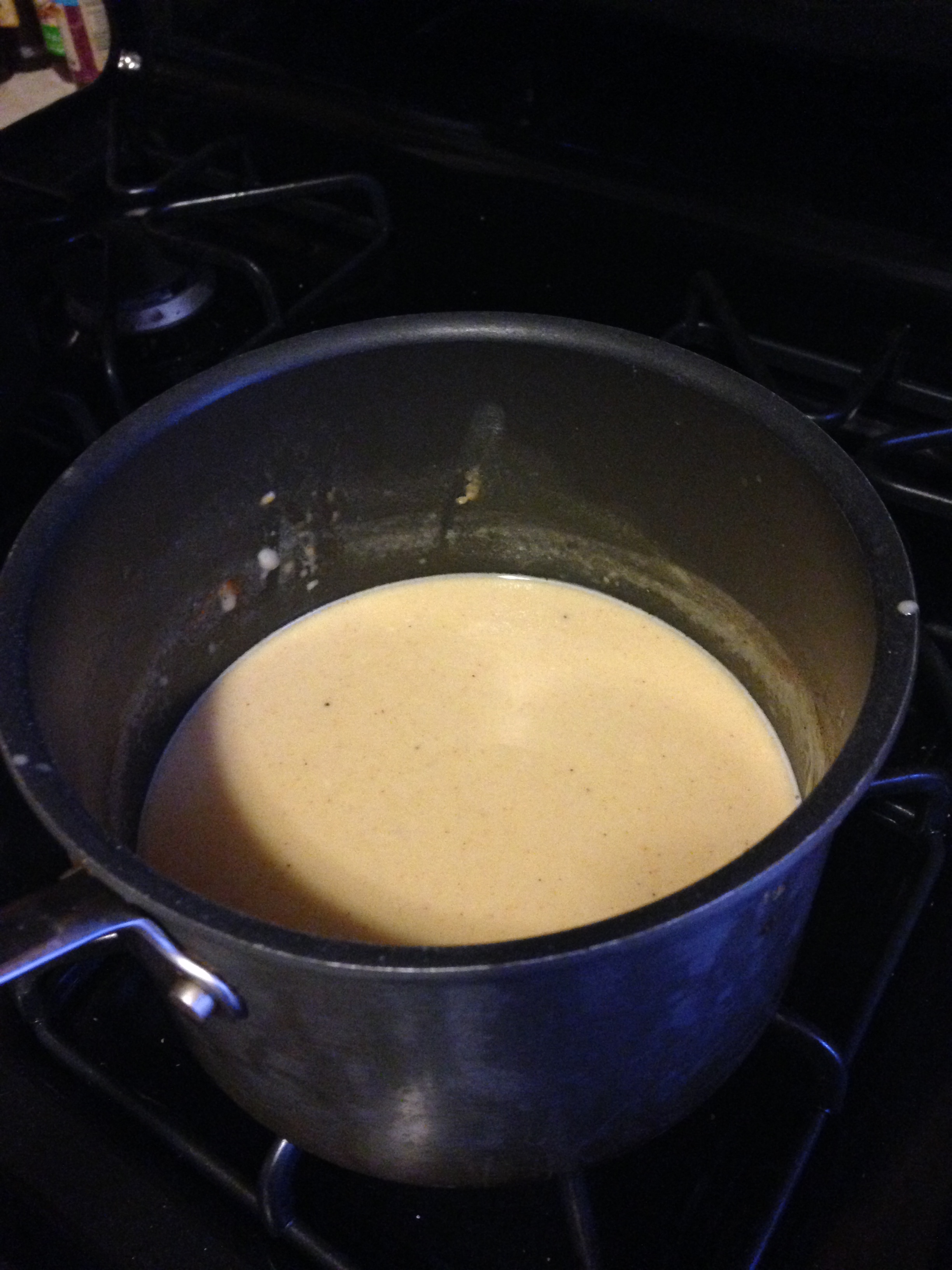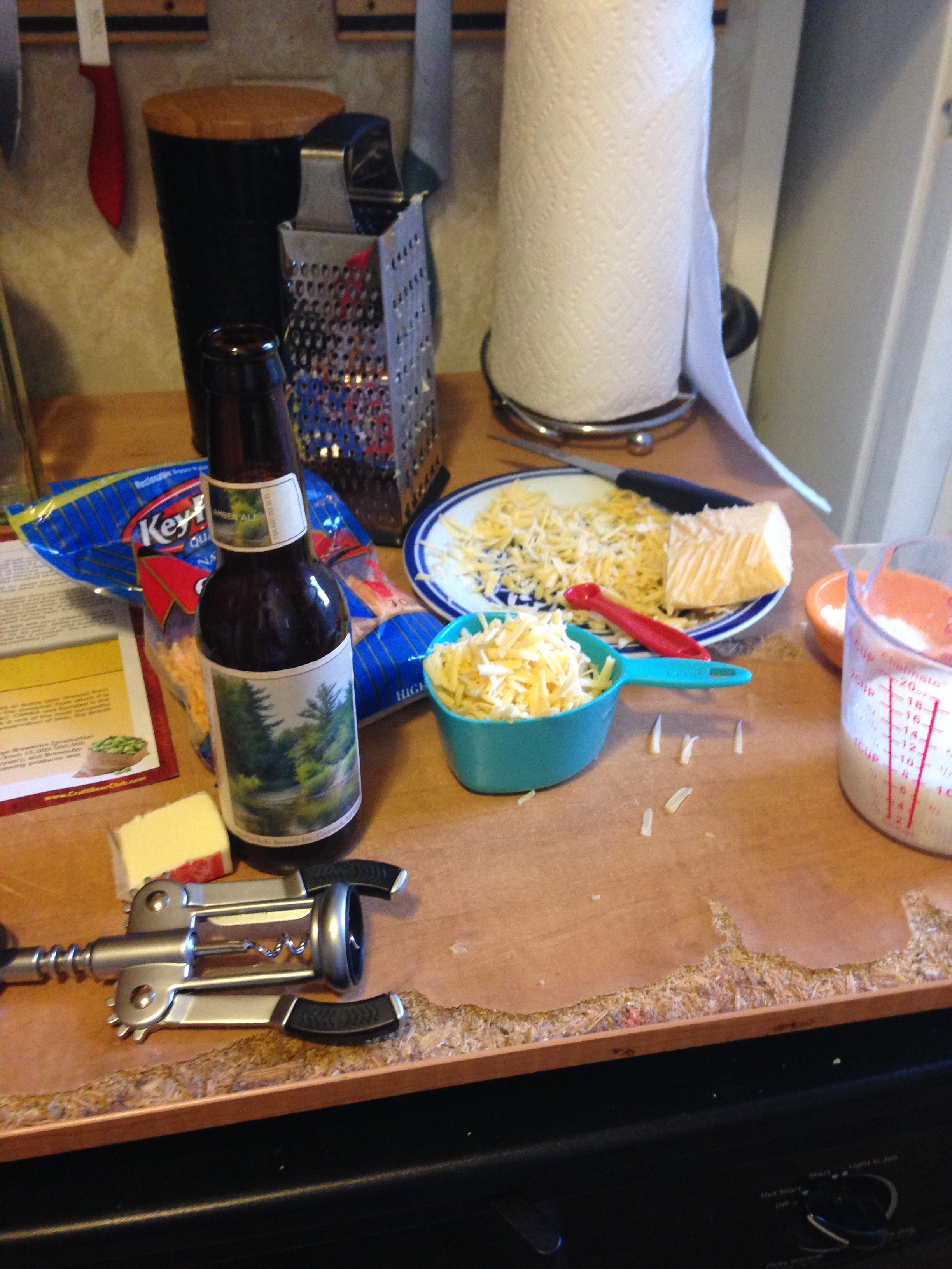 Here are my ingredients all ready to go while the water boils. I personally find it easiest to get everything chopped, shredded, and measured out before I start cooking (or waiting for the water to boil). As a general rule of thumb, the time it takes for the pasta to actually cook is about equivalent to the time you need to make your cheese sauce. If you can time it just right, you will only need one timer going and everything will end up ready at about the same time. Also, Bell’s Amber is delicious! Not that I sampled any while cooking…