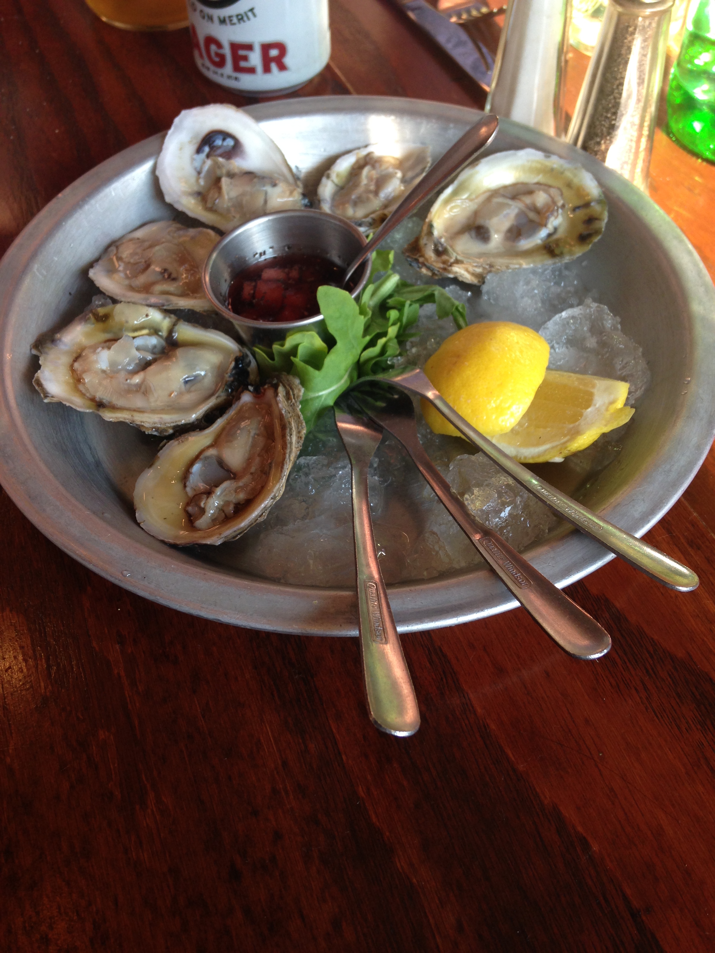 One of the greatest summer traditions in New York City is the $1 oyster happy hour. Walk down Bedford Ave. In Williamsburg, Brooklyn on a sunny afternoon, and you will pass at least half a dozen bars with chalk boards advertising their oyster specials. Although we are already into August, I went to my first oyster happy hour this summer finally last week. We decided to try out Sel de Mer on Graham since it not only had dollar oysters but half off beer and wine until 7. I started out with the Malbec Rose. It wasn’t fantastic, but it was chilled and felt very summery.