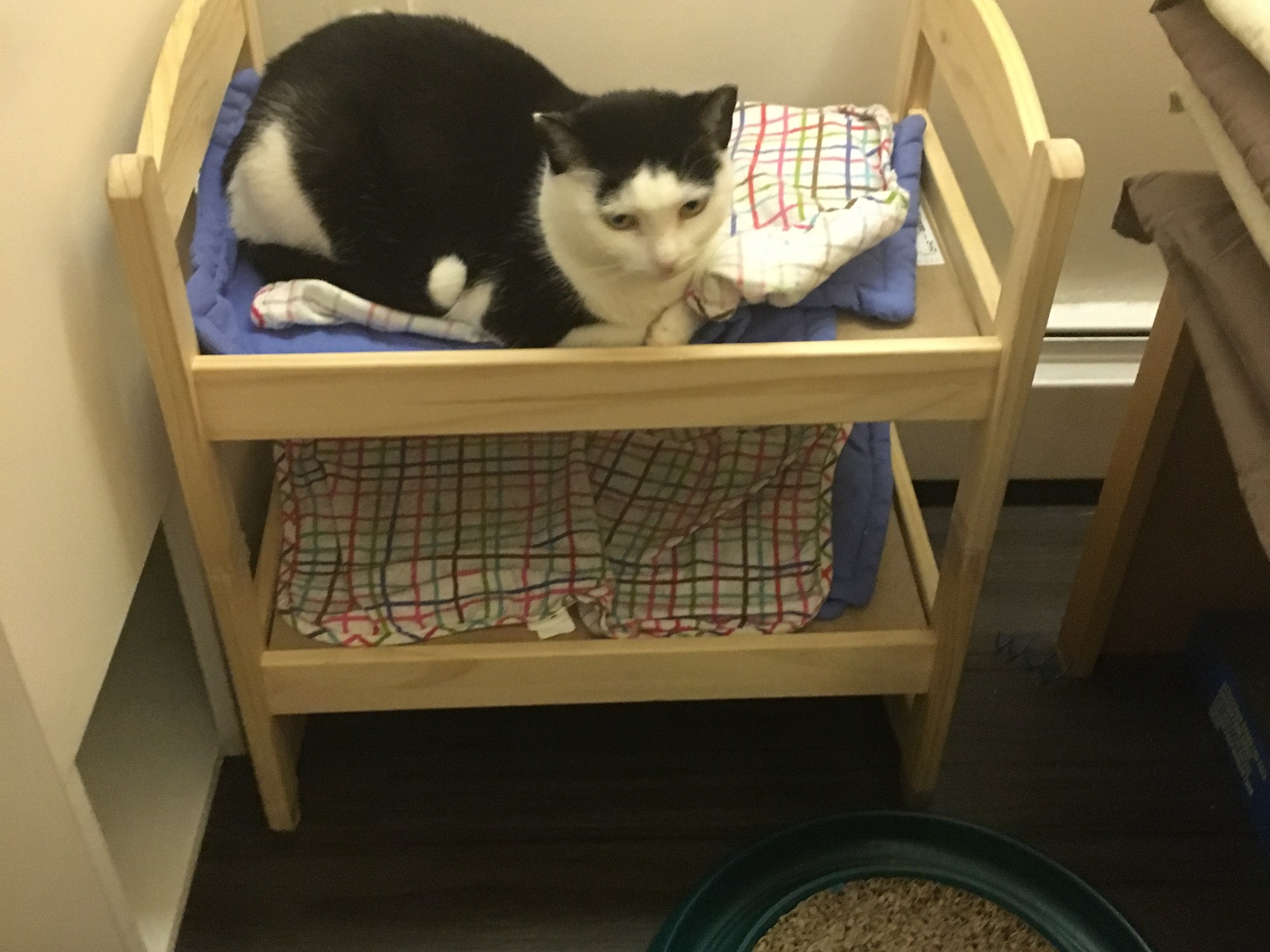 The Meow Parlour hosts a plethora of events including…cat yoga! Yes, you can do a yoga class while kitties run around your feet. Don’t worry, there is no downward facing dog, it is renamed downward facing cat (and child’s pose becomes kitten’s pose). It’s even better knowing that your practice is going to a great cause! The evening starts with free cat play time. It feels a little bit weird having unstructured, play time on the floor. Eventually, the cats and kittens really started to show their personalities.