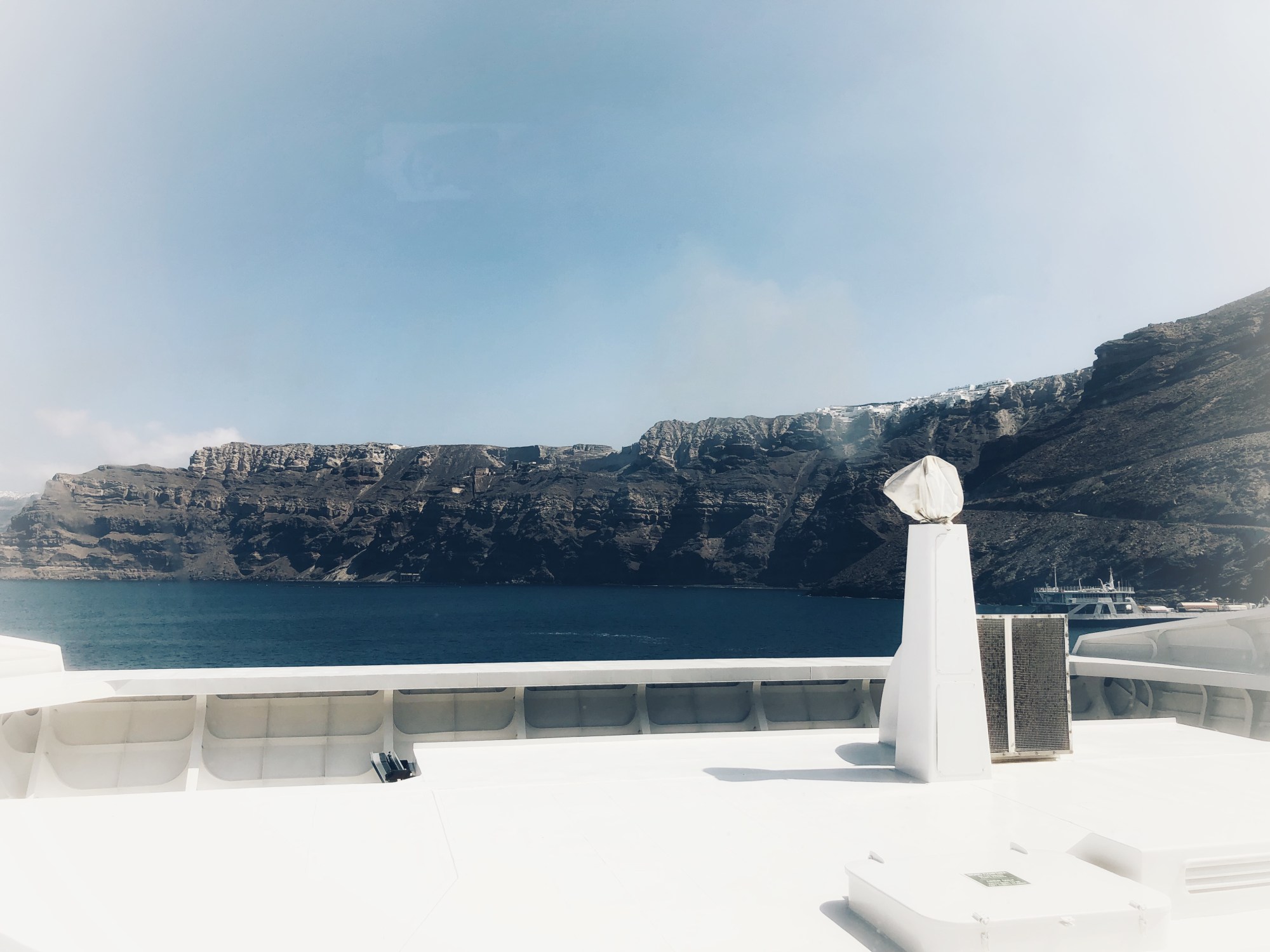 From Santorini, we traveled by ferry to the island of Ios. As we approached the island, the cliff-side landscape came into view.
