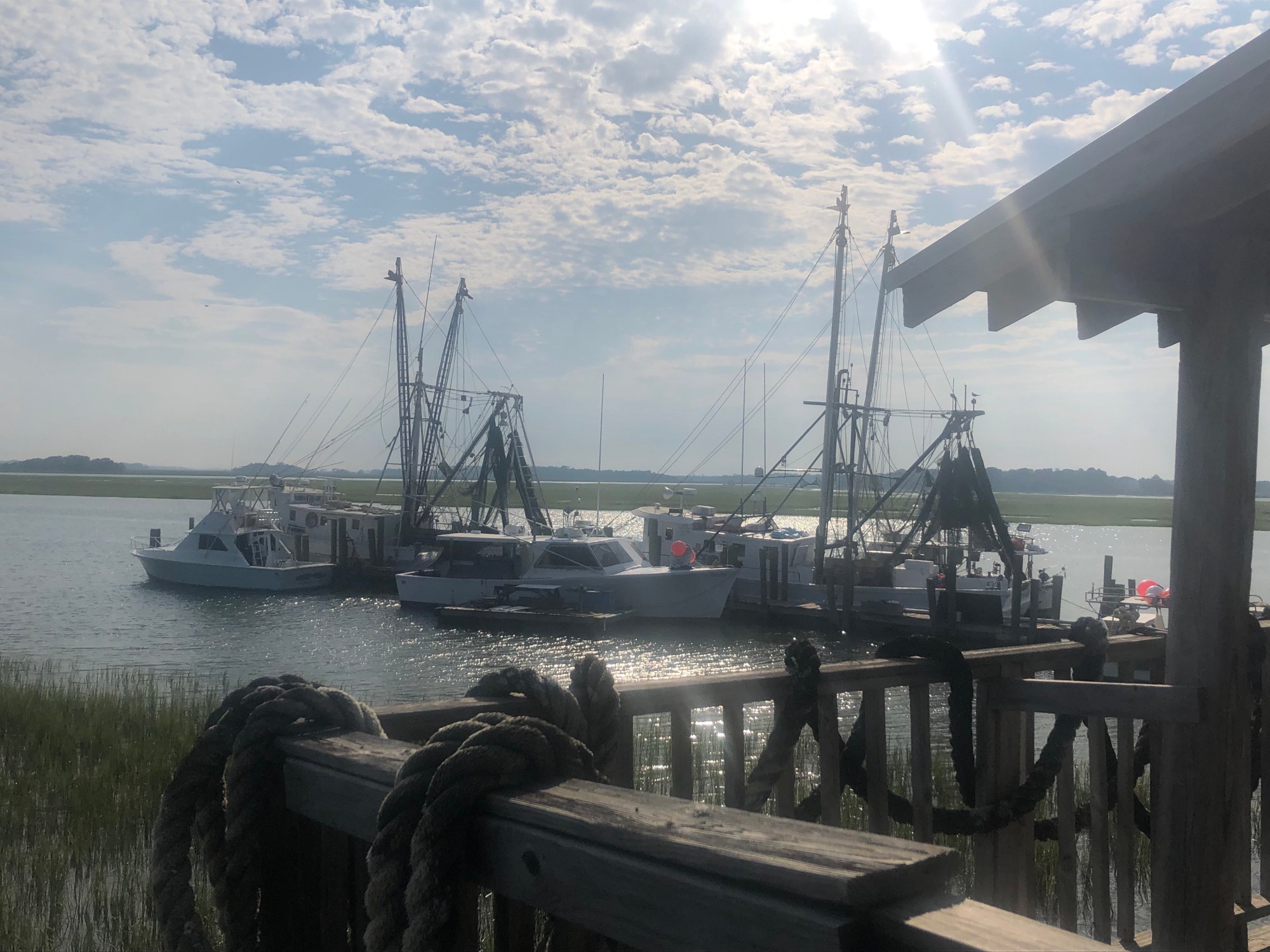 Despite the travel setbacks and delays, I eventually made it down to Charleston (NY -> DC -> Atlanta -> Charleston, whew!). Looking to do something a little different, we signed up for Coastal Expedition’s Folly Creek Sunset Kayak tour. Waiting to get started, we watched fisherman unloading their catch of the day to sell. And then, off we went to kayak the creek.